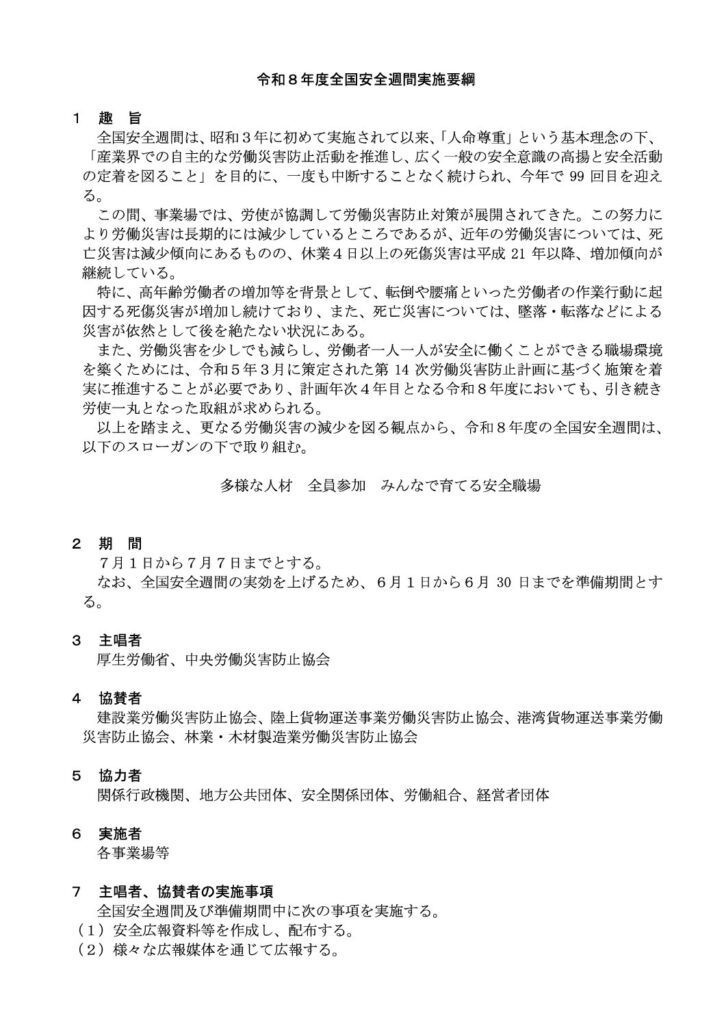 R8全国安全週間実施要綱が掲載されました。 - 森田労働安全コンサルタント事務所